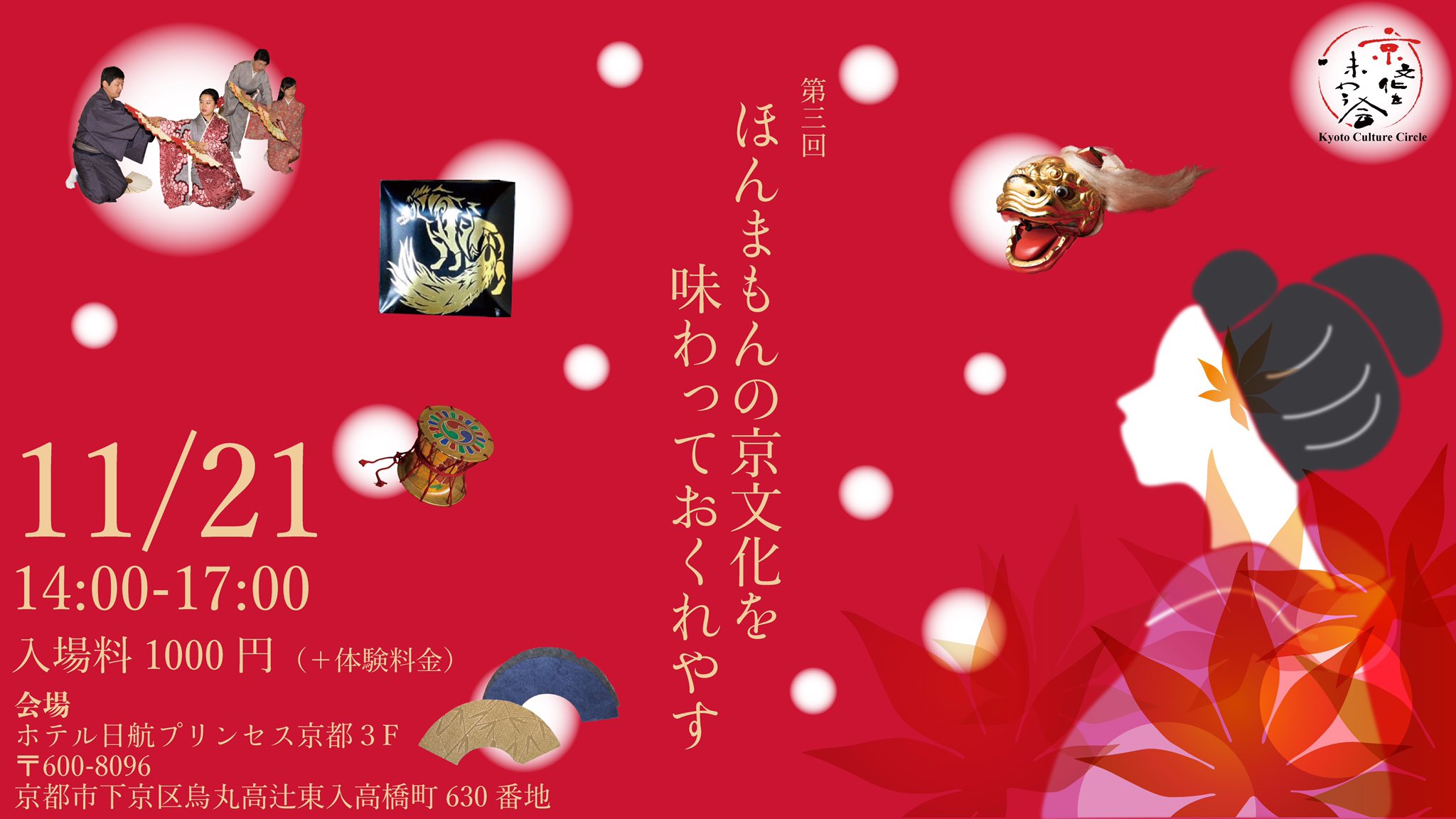 京の文化を味わう会主催、『第3回本物の京文化を味わう会』が開催されます。