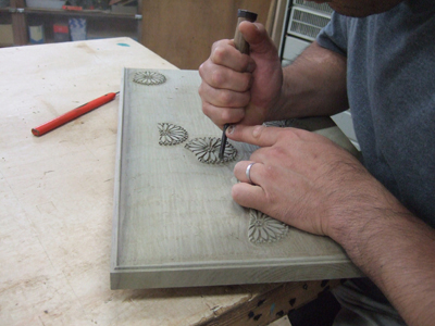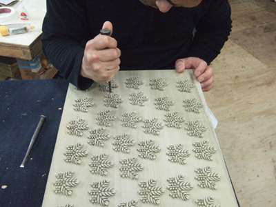 花びらの大きさ・間隔を均一に、そして柄の線がシャープに浮かび上がる様に慎重に仕上げていきます。