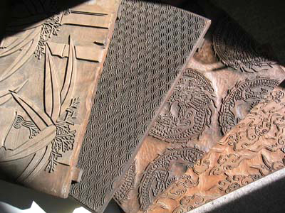 手のひらで擦って文様をつけるので、深く彫ってあります。江戸唐紙では桜材が多く使われています。