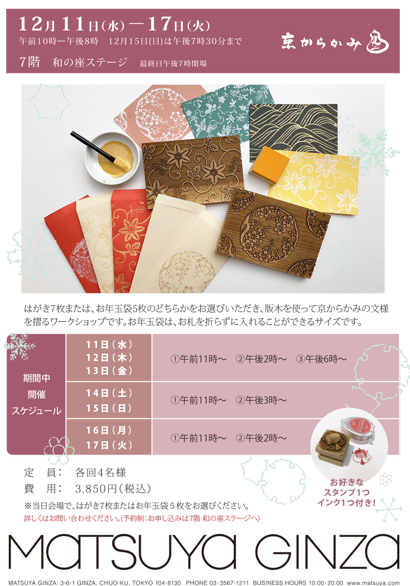 12月11日より、松屋銀座 7階和の座ステージにて、