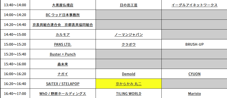 タイムスケジュールは、BAMBOO EXPO14のサイトをご確認ください。