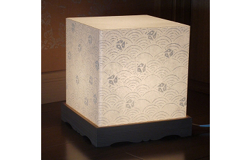 アクリル行灯(波にうろこ鶴) /木版 浅黄胡粉押し