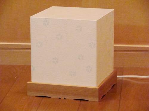 アクリル行灯(波にうろこ鶴) /木版 浅黄押し