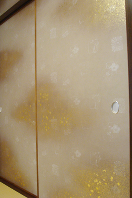 煤竹色の竹縁も京からかみによく合います。ポイントに銀引手も変化があって引き立っています。