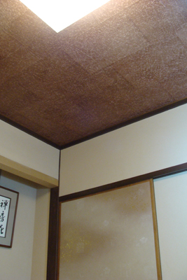 天井/柿渋引き 手揉み紙・小判石垣張り