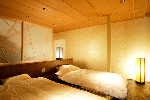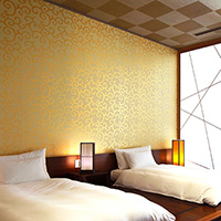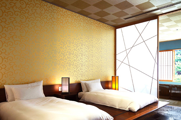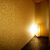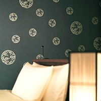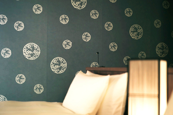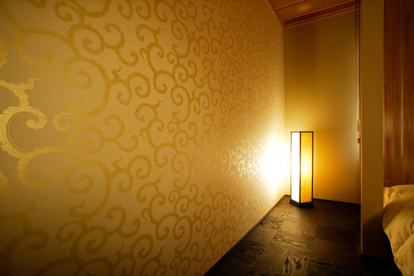 全室異なる京からかみで壁面を彩っており、伝統の文様は今も色褪せることなく新鮮で、その技術と手間は空間に奥行きを与えます。