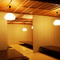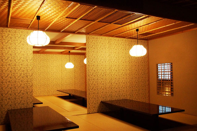 小上がり席には「松唐草」の文様を強めの色調で配置しました。